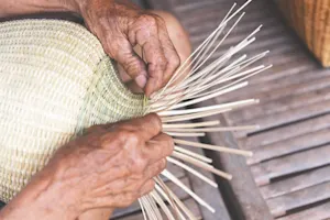 to interlace (threads, yarns, strips, fibrous material, etc.) so as to form a fabric or material