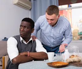 to scald briefly and then drain, as peaches or almonds to facilitate removal of skins, or as rice or macaroni to separate the grains or strands