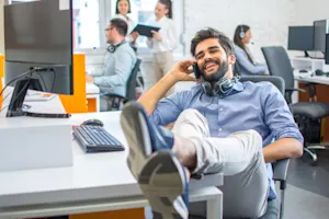 pleased, especially with oneself or one's merits, advantages, situation, etc., often without awareness of some potential danger or defect; self-satisfied