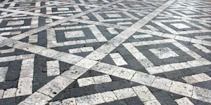 to form small squares or blocks, as floors or pavements; form or arrange in a checkered or mosaic pattern