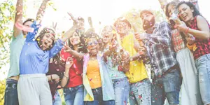 enjoy oneself or celebrate in a noisy or boisterous way