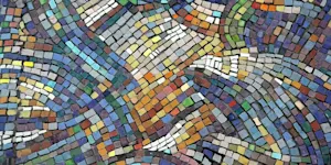 a picture or decoration made of small, usually colored pieces of inlaid stone, glass, etc.