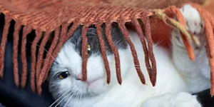 to settle securely or snugly; to cover or shelter; hide securely